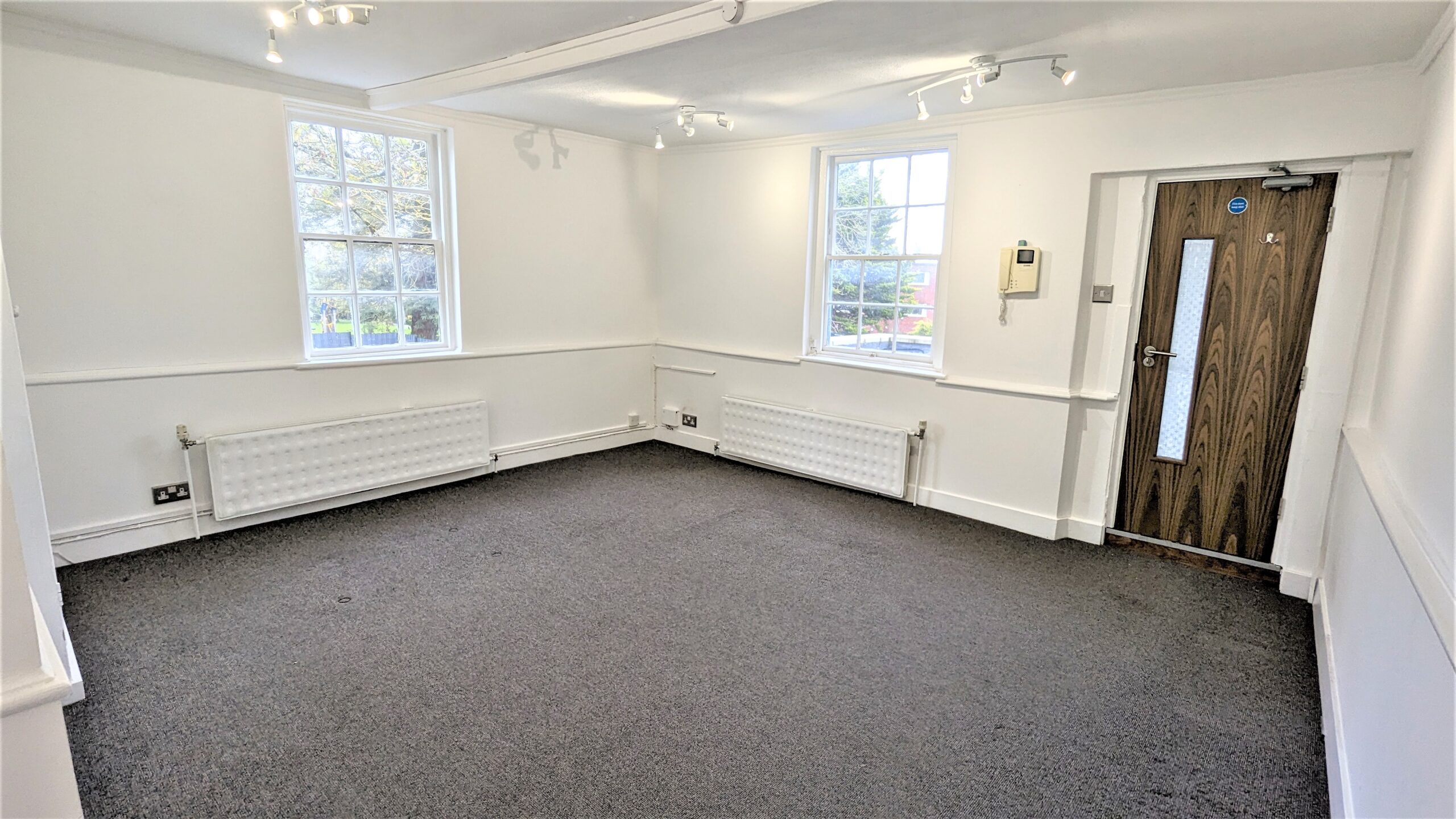 210 sq ft office on the first floor with two large windows offering lots of light and a deep double fitted cupboard.